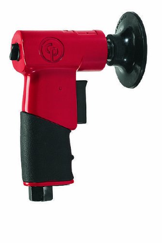 Chicago Pneumatic mini pistol disc sander with 3" (75mm) Roloc pad. Rubber molded pistol grip. Adjustable power regulator. Two finger progressive throttle. Silence handle exhaust. Rubber Molded Pistol Grip Adjustable Power Regulator Two Finger Progressive Throttle Muffled Handle Exhaust 1-Year parts and labor